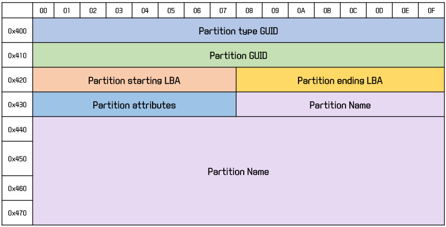 이번 포스팅에서는 GPT와 GPT Header, GPT Partition Entry 구조에 대해서 살펴보았습니다.