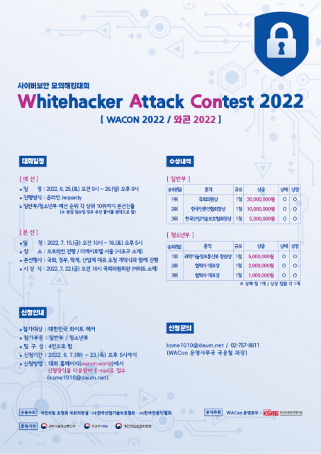 | 2022 HACKTHEON SEJONG 전국 대학생 사이버보안 경진대회 및 컨퍼런스 (22.07.04 ~ 07.29 접수) (0) | 2022.07.14 |