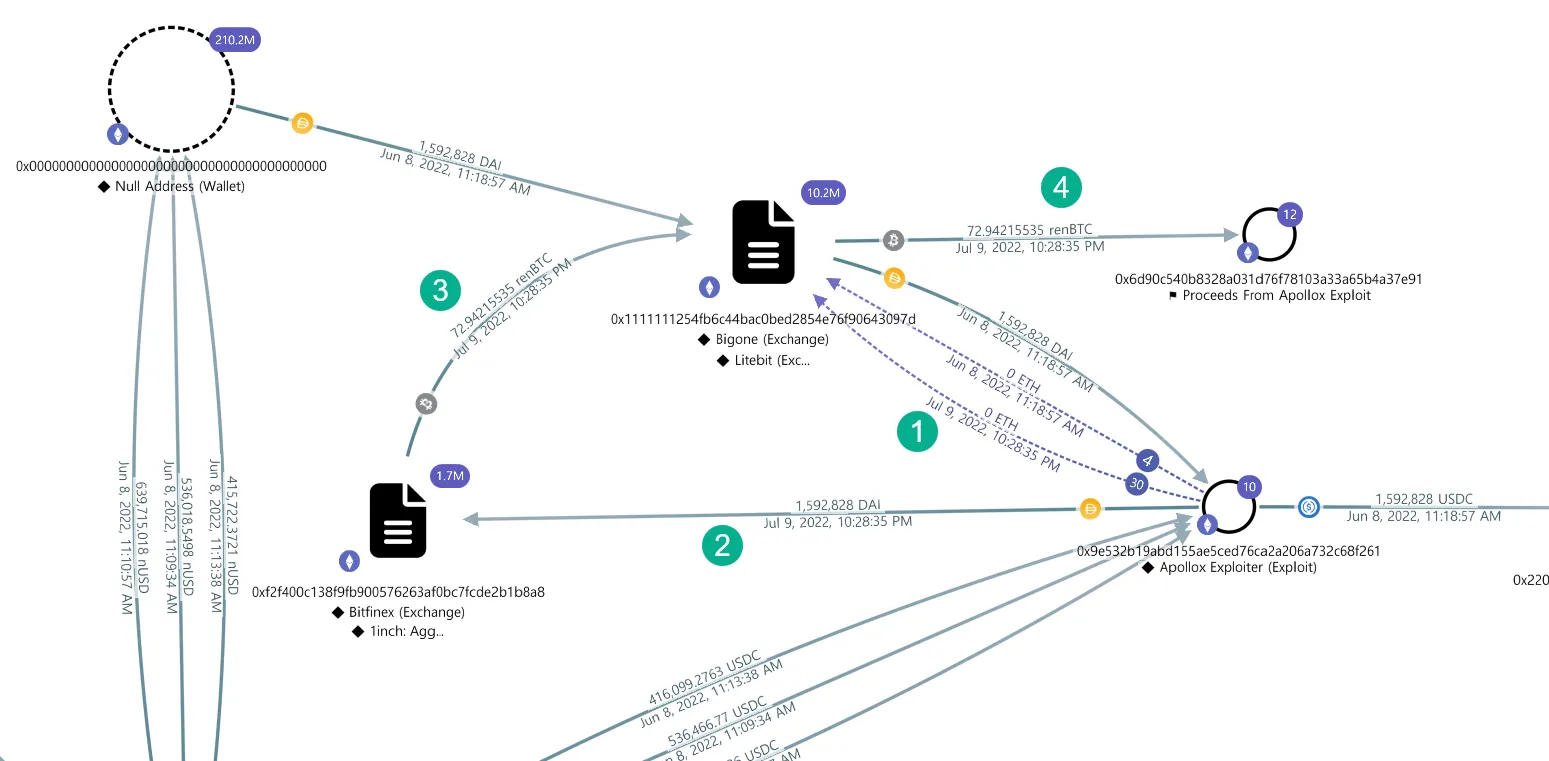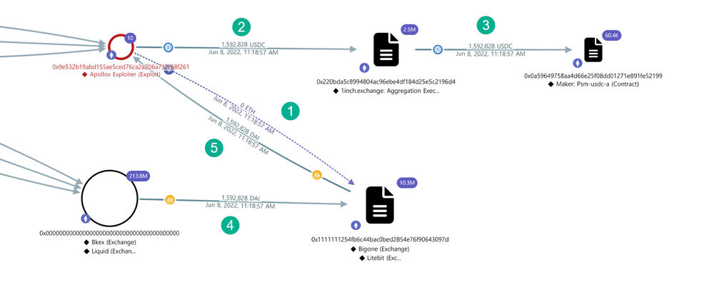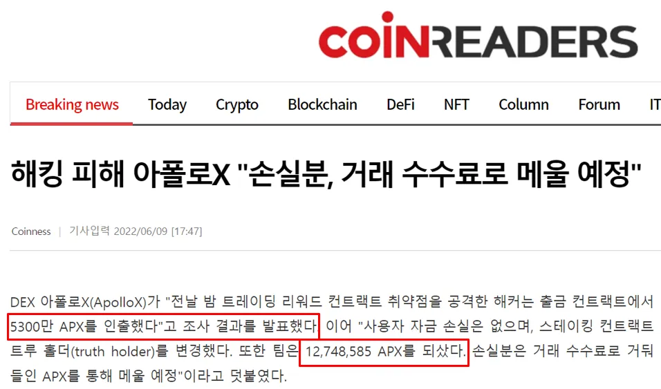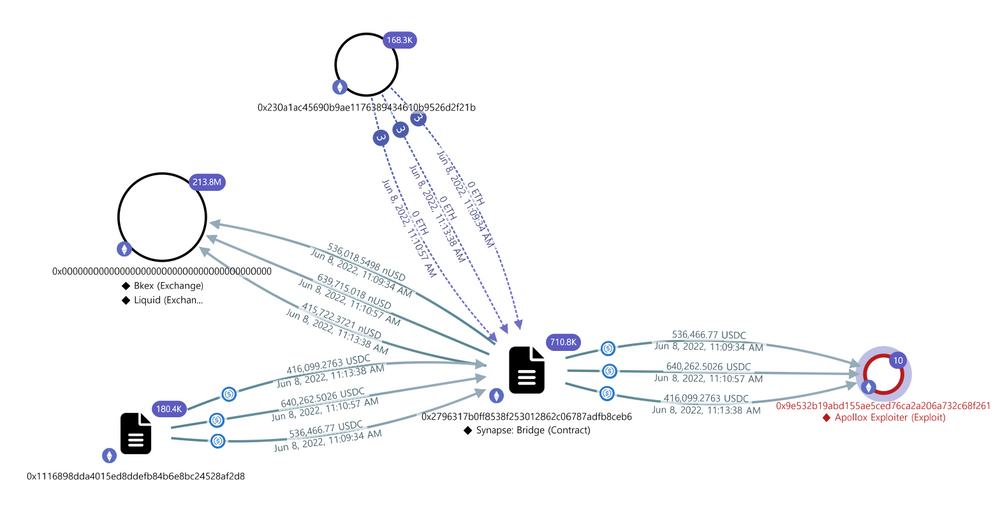 - 2022년 6월 8일 19시 경(UTC+8) Apollo X 거래소 대상으로 공격 발생