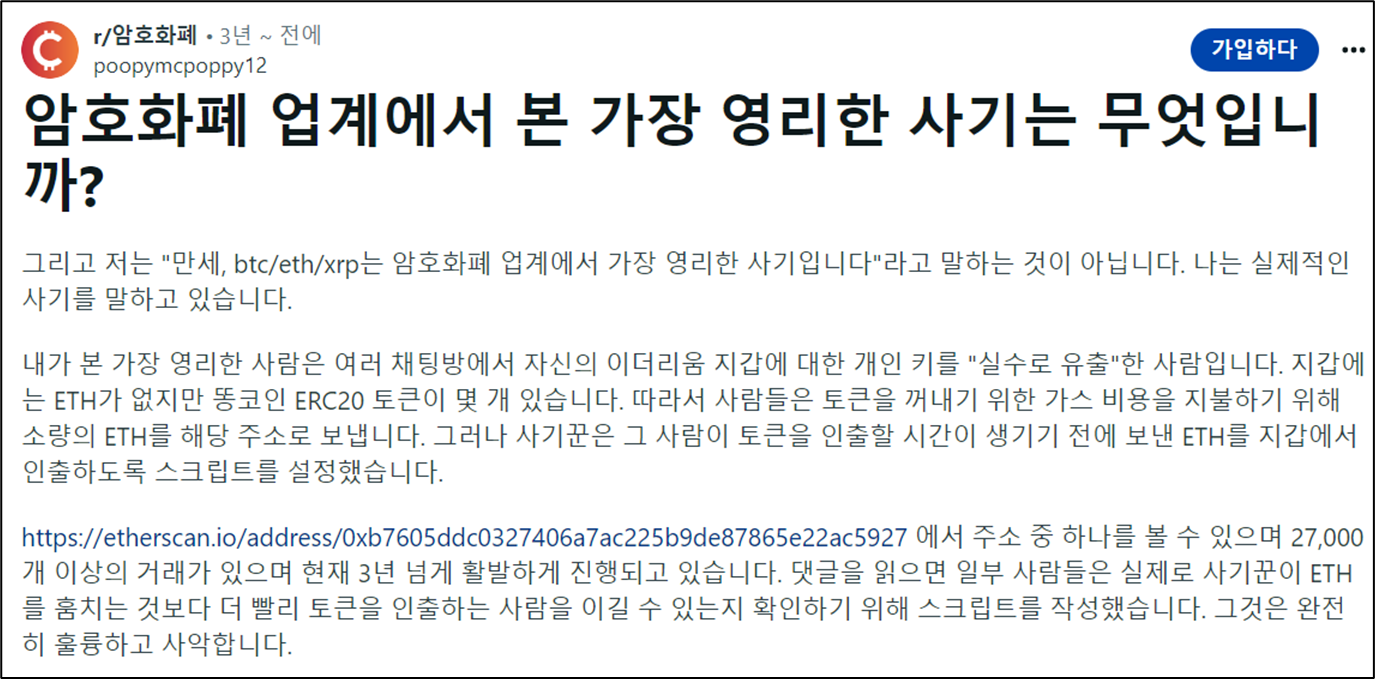 - 게시글을 본 사람들은 토큰을 가져오기 위해 공격자의 주소로 ETH를 보낸다.