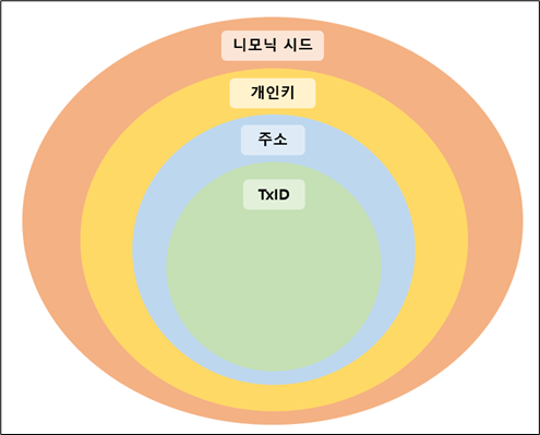 주요 정보의 관계는 위 그림과 같이 표현해볼 수 있다. 니모닉 시드를 알면 개인키를 알 수 있고, 개인키를 알면 주소를 알 수 있다. 주소를 알면 그 주소를 포함하고 있는 트랜잭션 데이터를 조회할 수 있다.