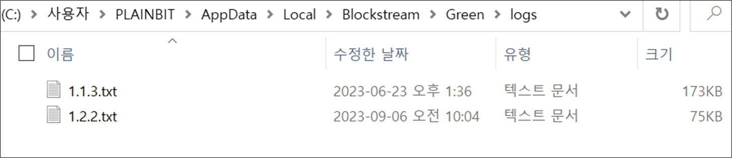 "Blockstream Green"이라는 지갑 프로그램은 프로그램 사용 중 발생하는 로그를 위와 같은 경로에 저장하고 있다. 기존에는 프로그램 버전이 업데이트 되면 새 버전 값으로 로그 파일이 새로 생성되어 추가되는 형식으로 동작했다.