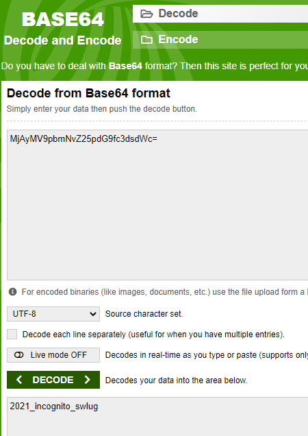 문자열이 = 로 끝나는 것을 통해 base64 encoding 기법이 적용된 것을 추측할 수 있으며 디코딩하면 플래그를 얻을 수 있습니다.