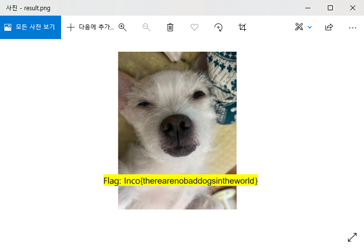 이미지 파일을 열어보면 플래그를 확인할 수 있습니다.