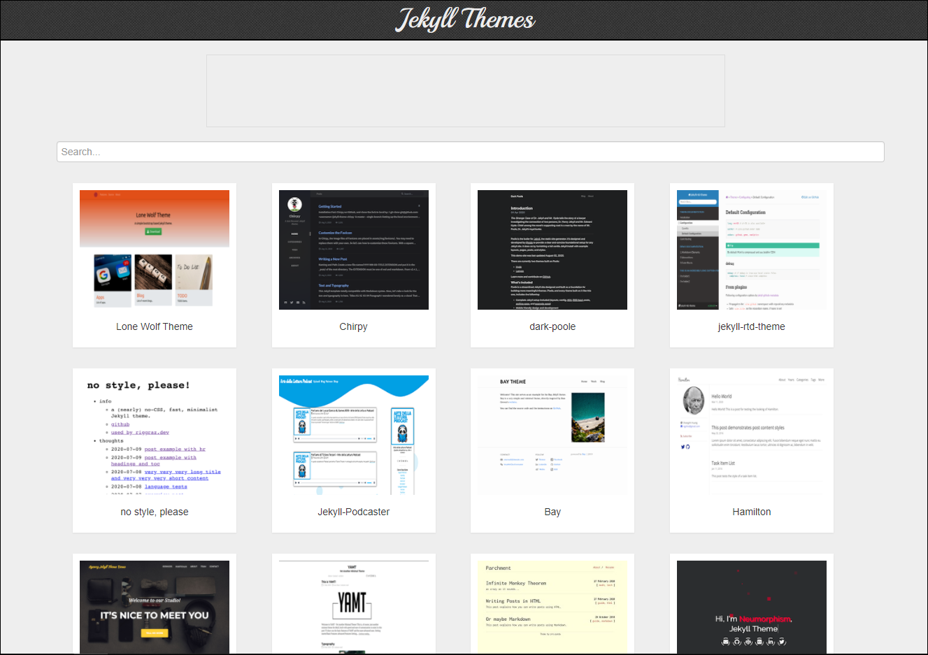 Jekyll 라는 미리 만들어져 있는 테마를 가져와서 입맛에 맞게 수정해주면 됩니다. - 다음 링크에서 아래 사진과 같이 여러 개의 테마를 확인할 수 있습니다.