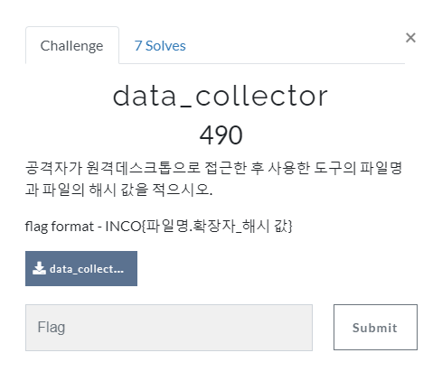 공격자가 원격데스크톱으로 접근한 후 사용한 도구의 파일명과 파일의 해시 값을 구하는 문제입니다.