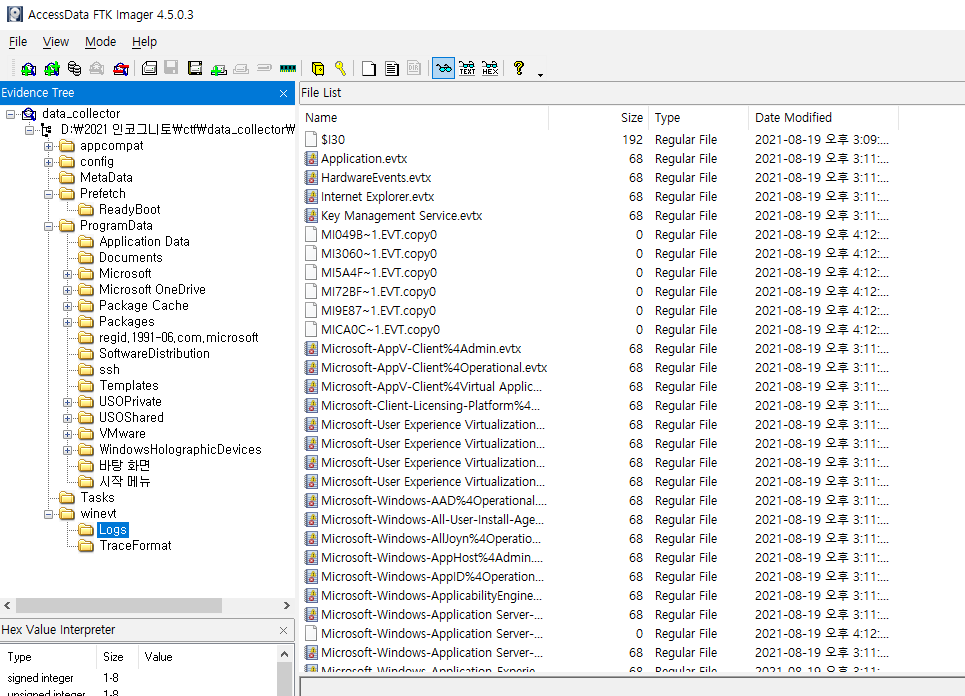 그런데 이벤트로그에 남아있는 데이터가 하나도 없었습니다.