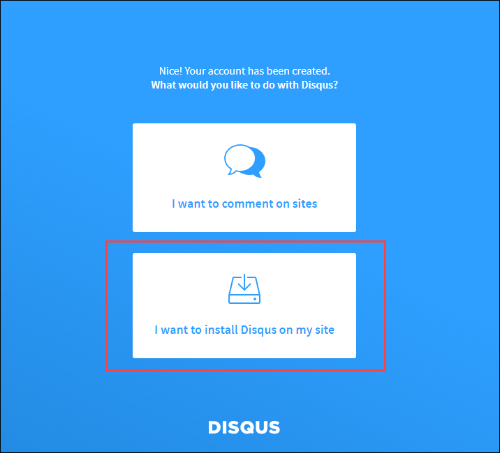 I want to install Disqus on my site를 눌러줍니다.