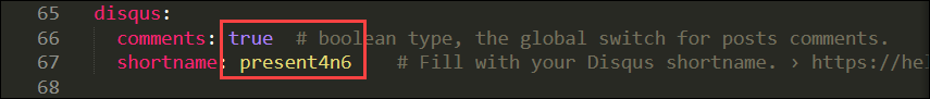 comments에 대한 코드가 있습니다. 이 부분은Jekyll테마마다 코드가 조금씩 다를 수가 있는데요.provider라고 되어있는 분은disqus를 입력해주시면 됩니다. 저처럼boolean값으로 설정해야 되는 분들은true로 설정하시면 됩니다.
