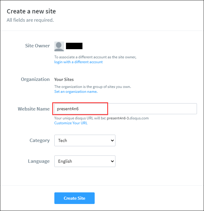 3. Website Name 입력