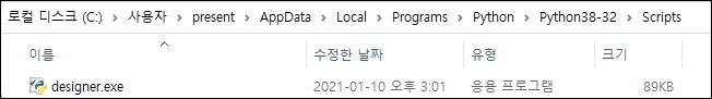 - 정상적으로 설치가 되었다면 아래그림과 같은 경로에서 Designer를 확인할 수 있습니다.
