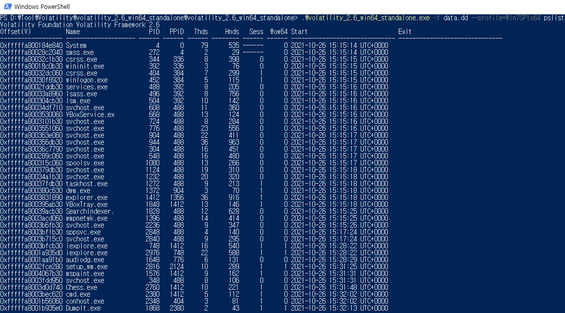 .\volatility_2.6_win64_standalone.exe -f data.dd --profile=Win7SP1x64 pslist